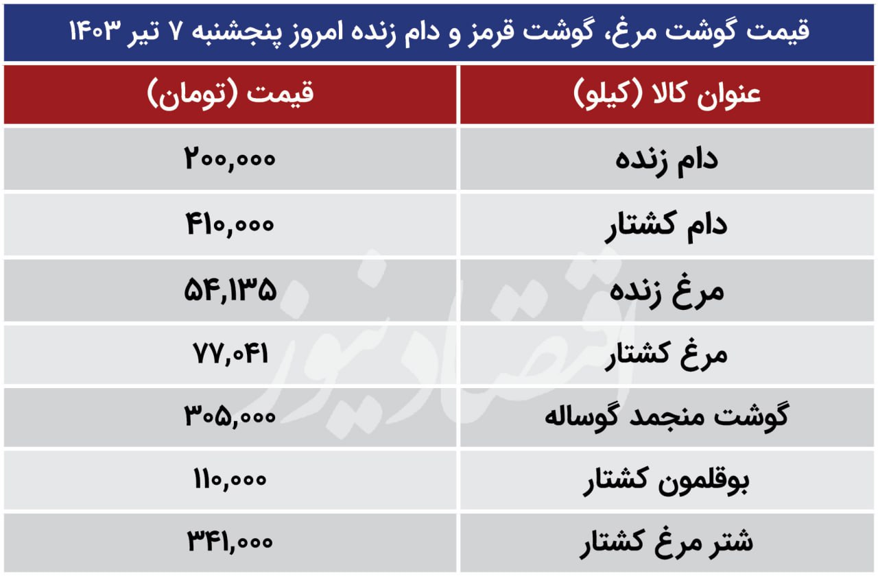 قیمت جدید مرغ، گوشت و دام زنده امروز ۸ تیر ۱۴۰۳ اعلام شد/ جدول قیمت