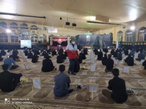 با مشارکت اعضای سازمان جوانان در سراسر استان همه افراد عزادار در مدخل ورودی هیئت بااسپری مواد ضدعفونی کننده دست های خود را بهداشتی کرده و با دستگاه های الکتریکی تب سنج مورد غربالگری قرار گرفته وبه افرادی که ماسک نداشتند نیز ماسک های استاندارد و بهداشتی تامین شده از سوی سازمان جوانان تقدیم شد و در یک طرح ابتکاری جالب تصاویر شهدای استان تهیه و در بین عزاداران به صورت رعایت فواصل اجتماعی قرار داده شد و با استقرار عزاداران در بین این عکسها فاصله تاییدو تاکید شده توسط وزارت بهداشت به نحو احسن رعایت شد. ودر صورت عدم رعایت برخی از عزاداران با راهنمایی های صورت گرفته توسط خادمان حسینی هلال فواصل مناسب رعایت شد.وهمه سطوح از قبیل صندلیها ،میکروفون ، سیستم های صوتی ،موکت ها ، قالی ها ، درب و دیوار هیئات و همچنین سرویسهای بهداشتی محلهای عزاداری قبل و بعد از برنامه ضدعفونی شد..